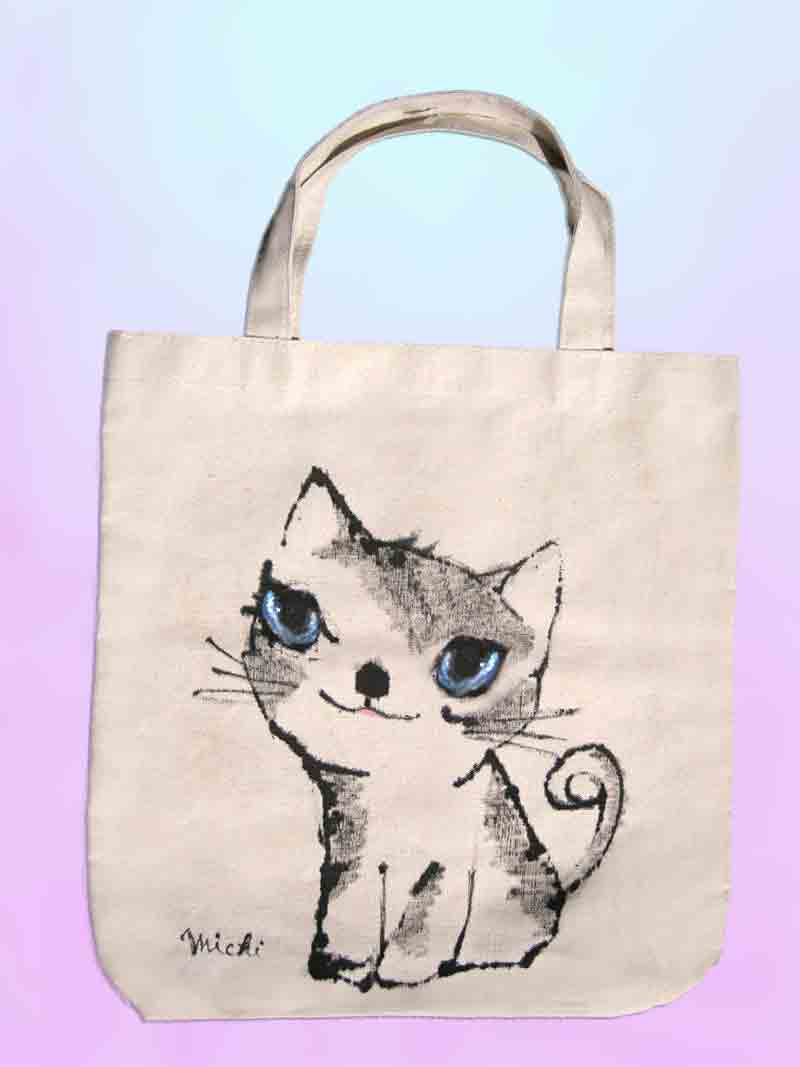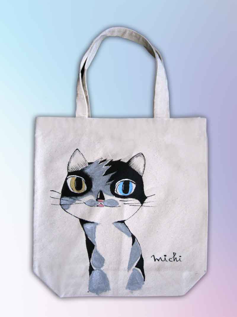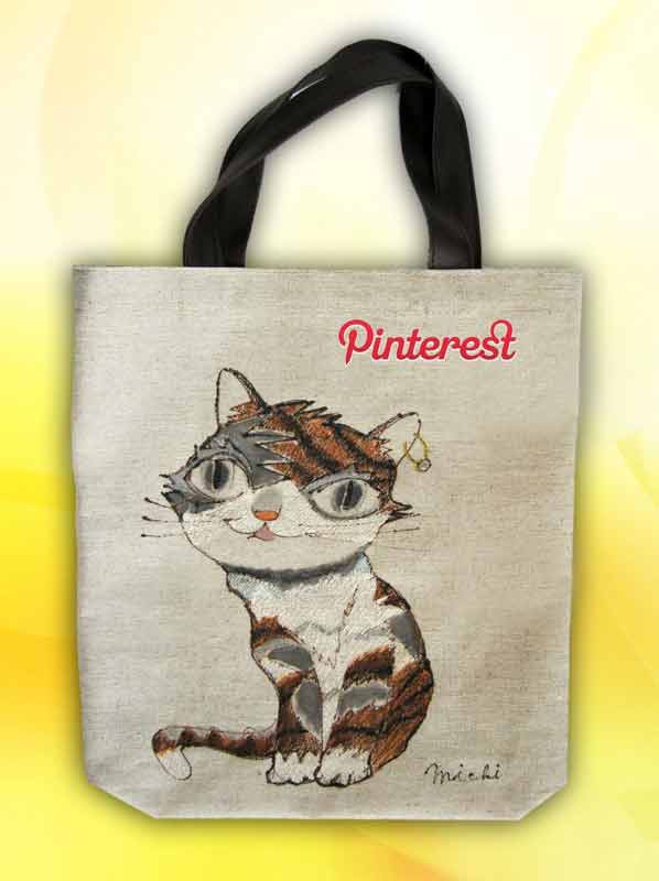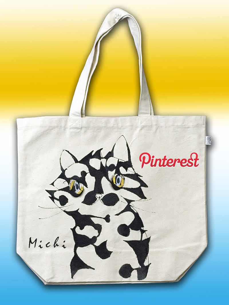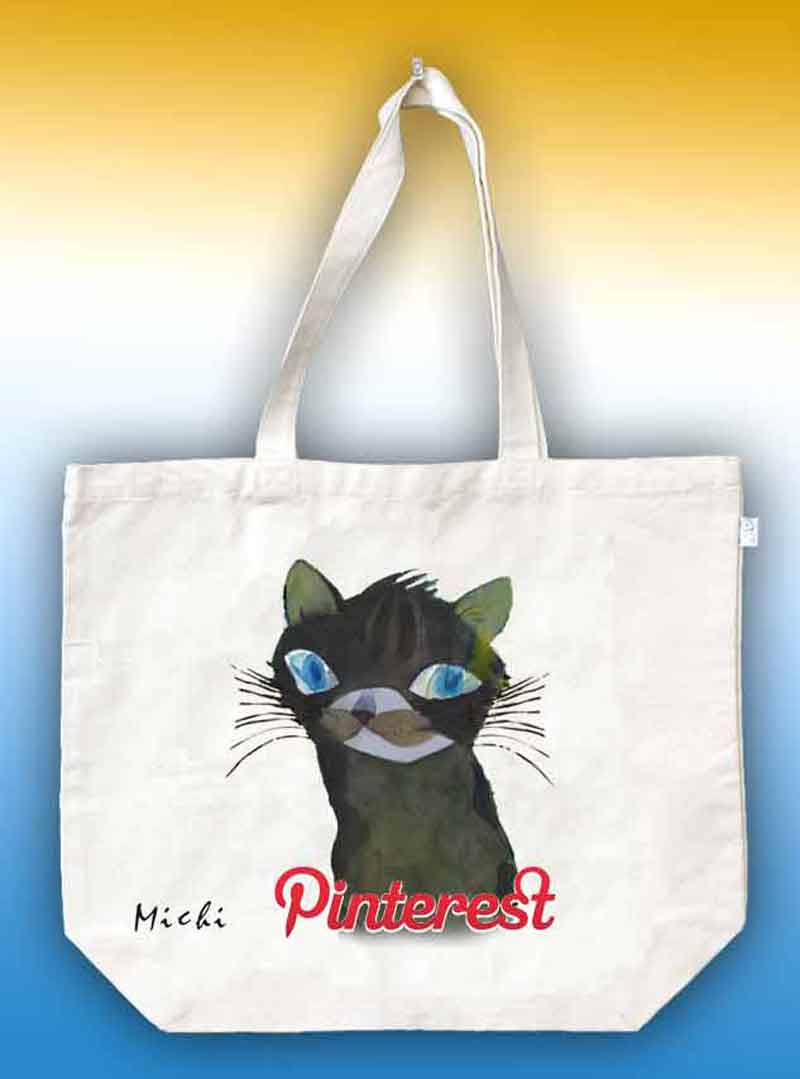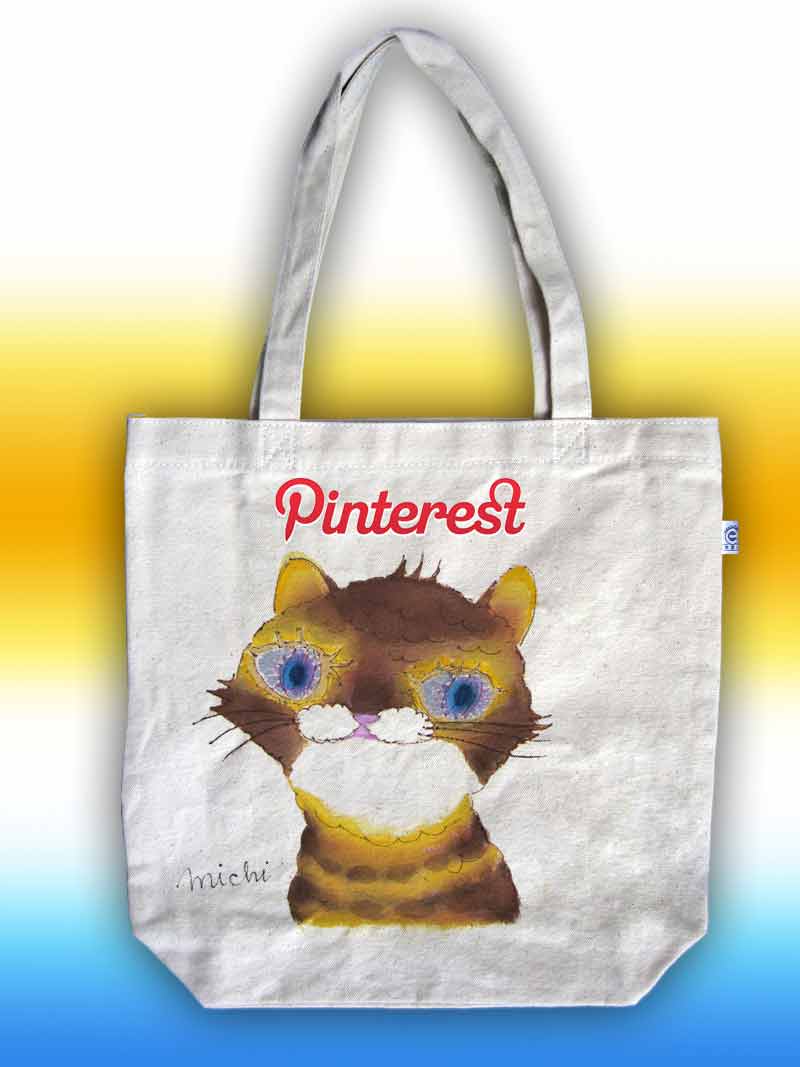 I painted pictures of a various types of cats on the cotton eco-bags. Pinterest logo mark was pasted using Photoshop App.