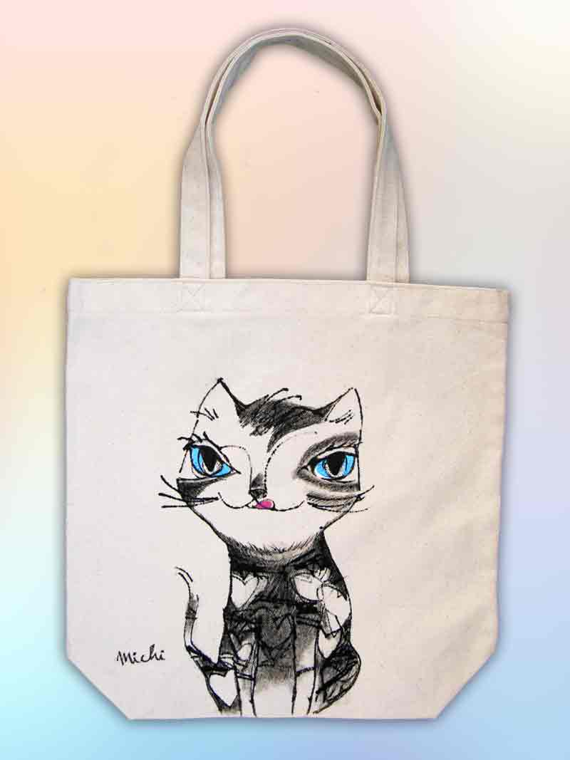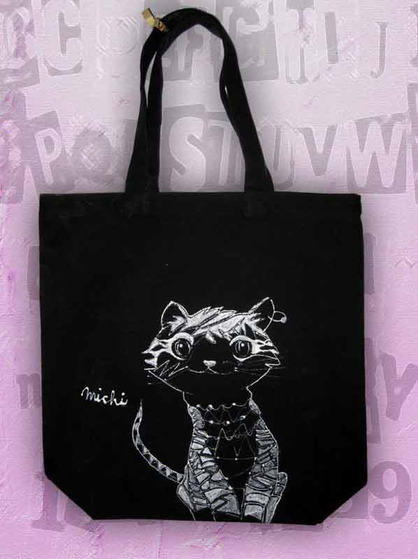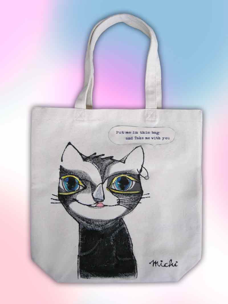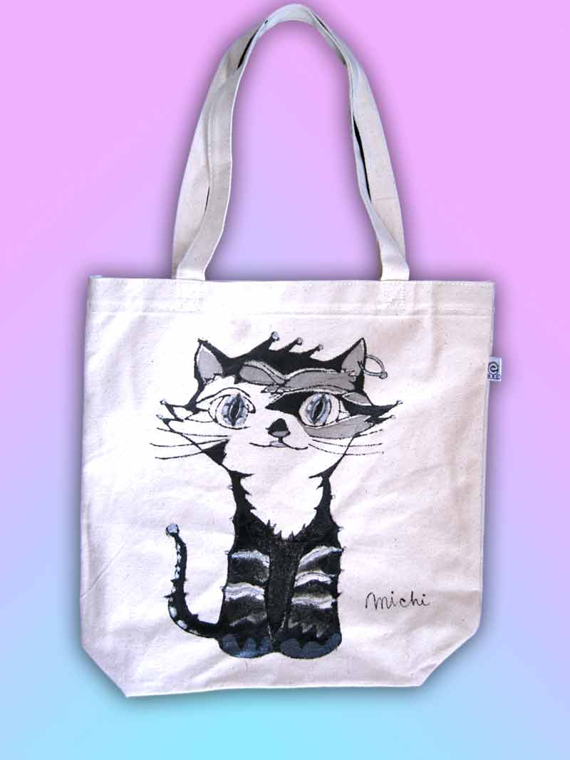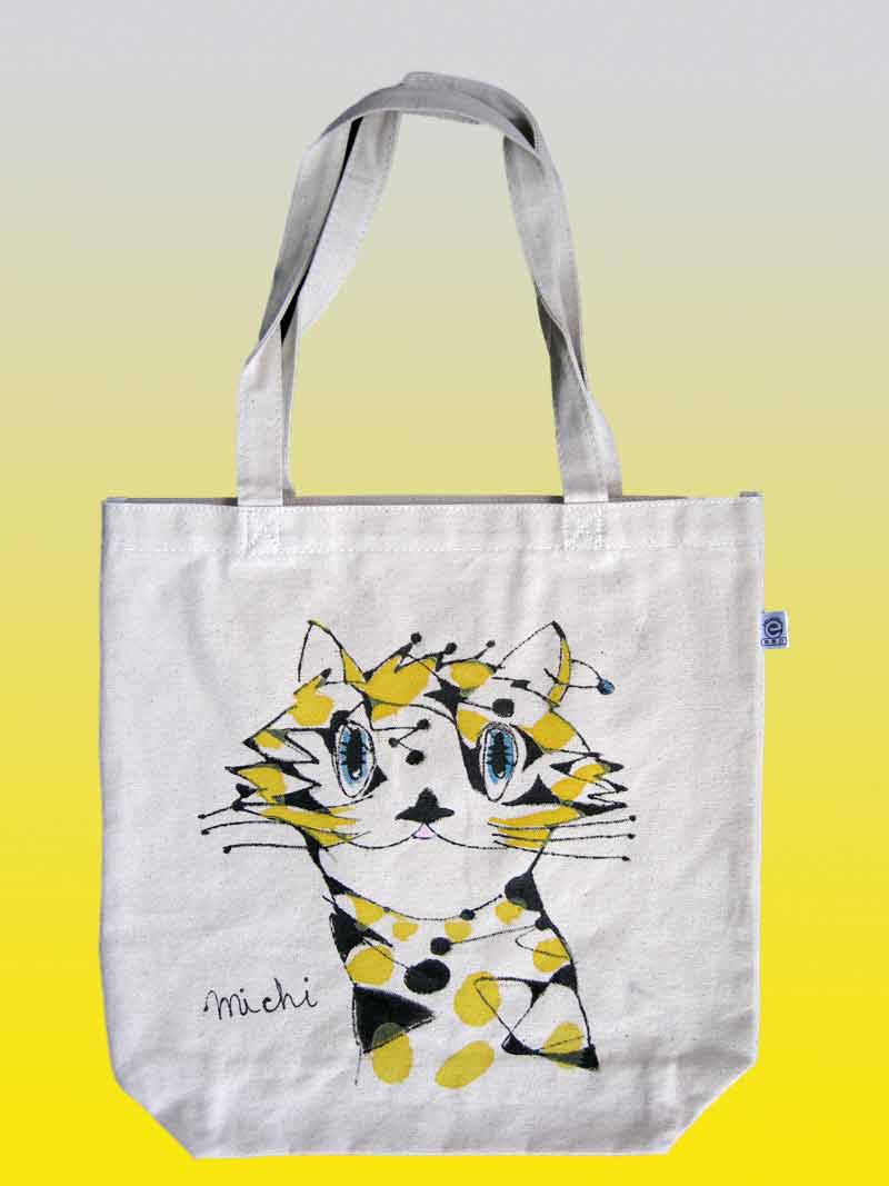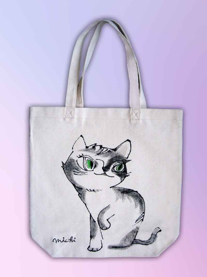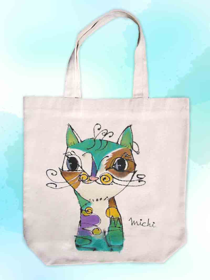 I painted pictures of a various types of cats on the cotton eco-bags. Pinterest logo mark was pasted using Photoshop App.