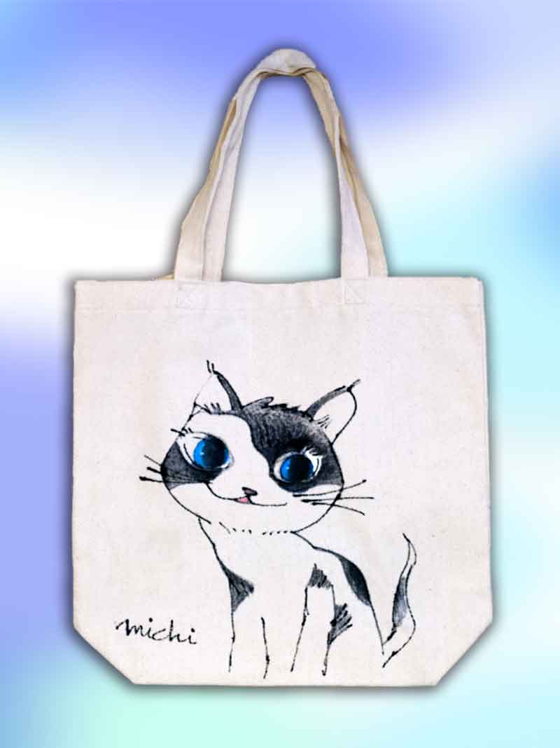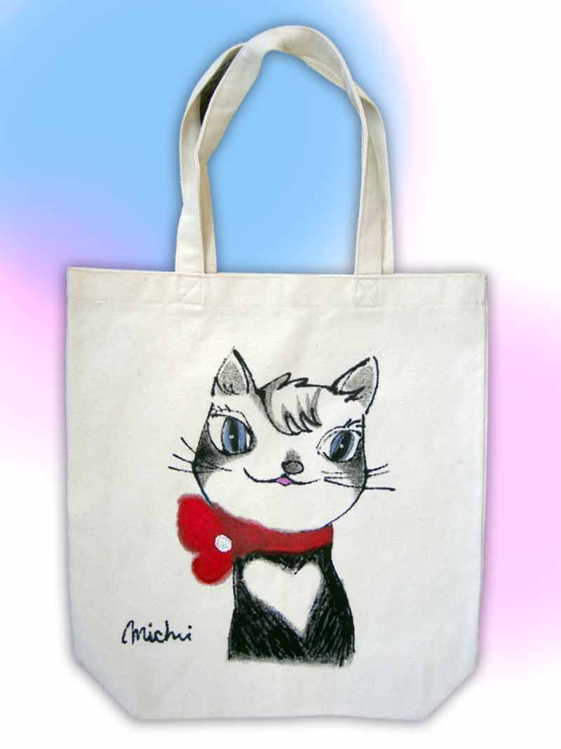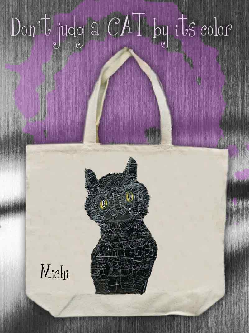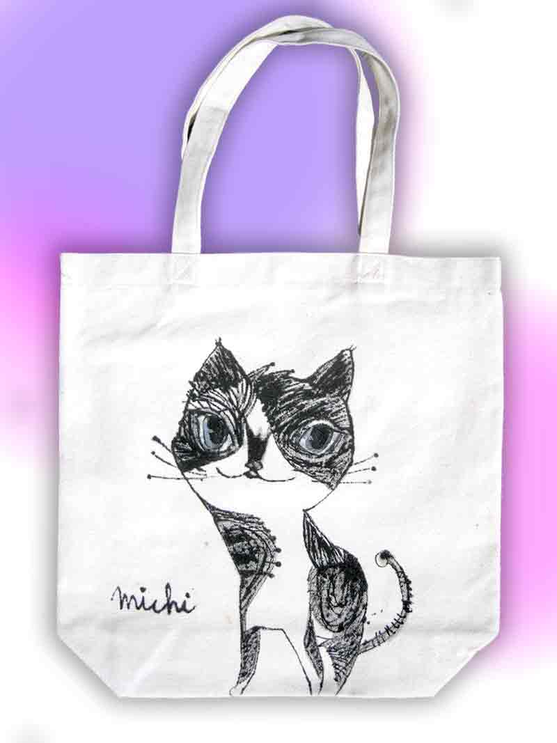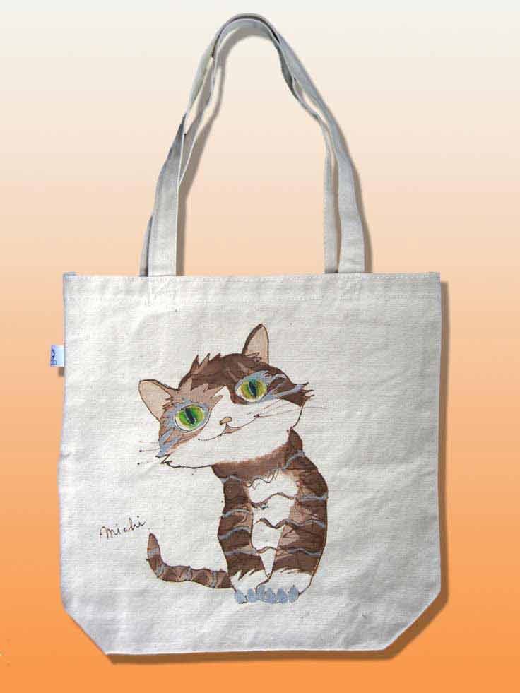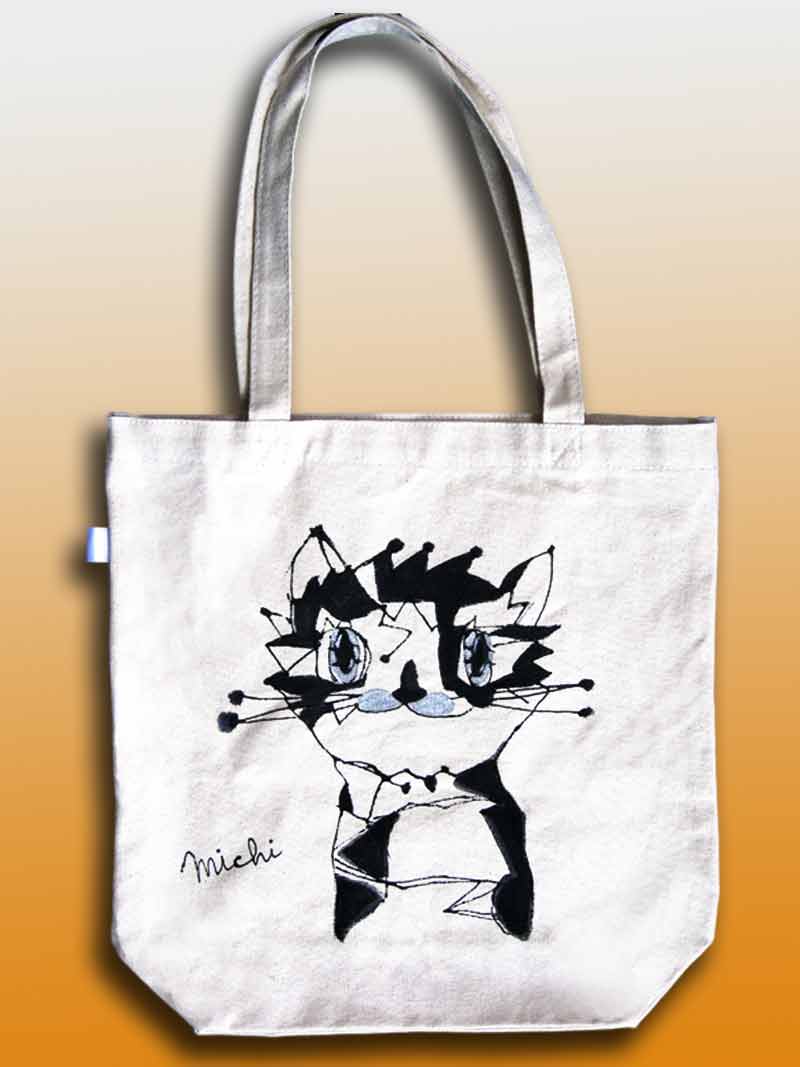 I painted pictures of a various types of cats on the cotton eco-bags. Pinterest logo mark was pasted using Photoshop App.