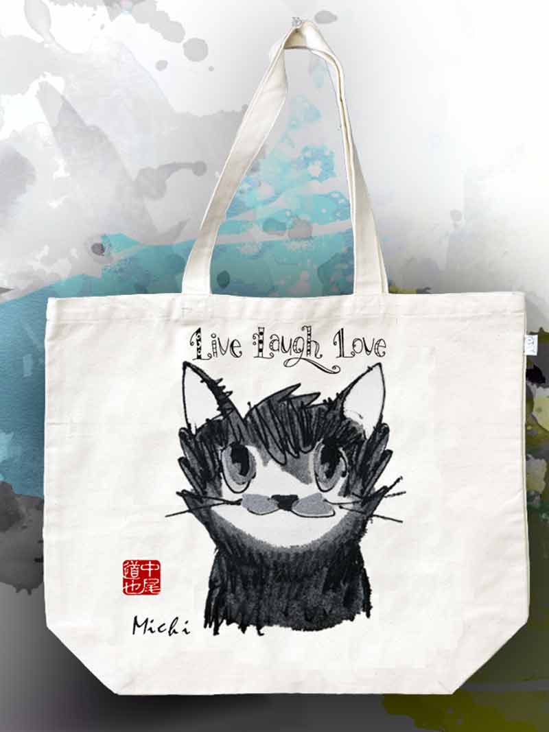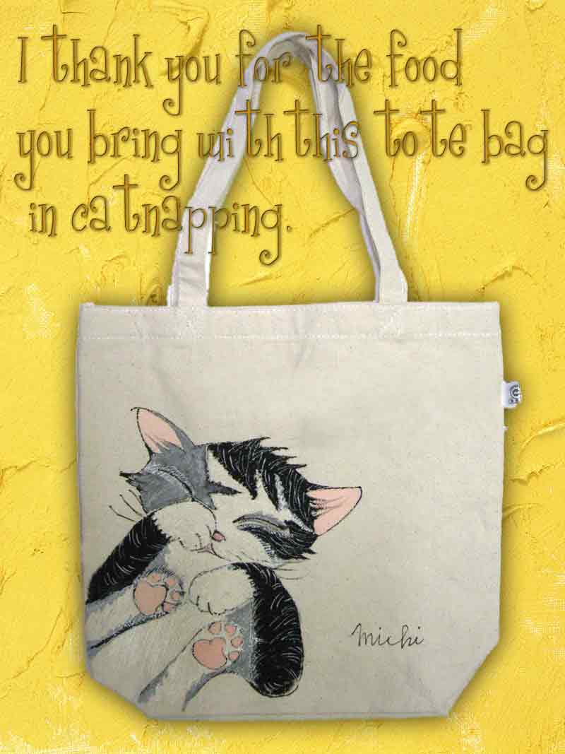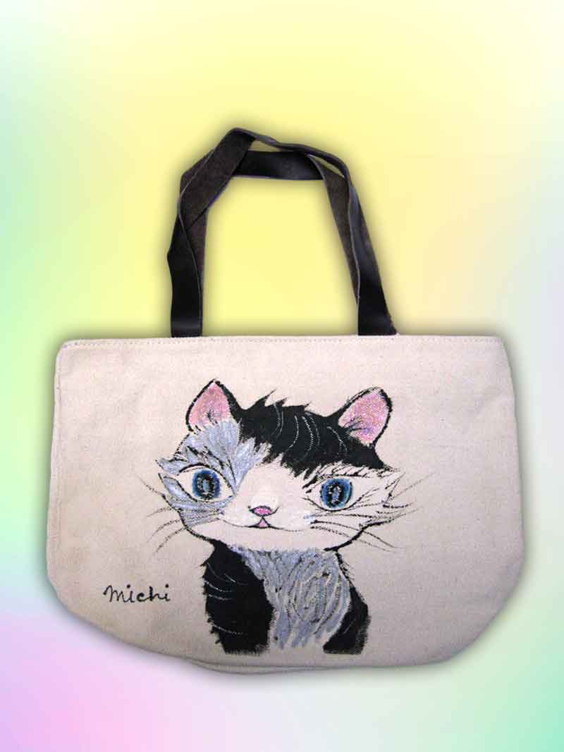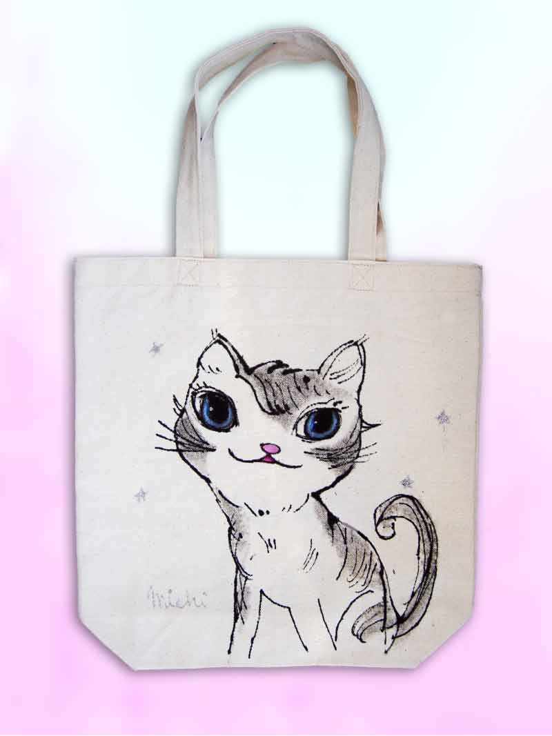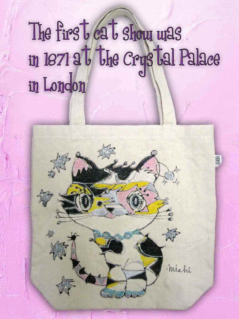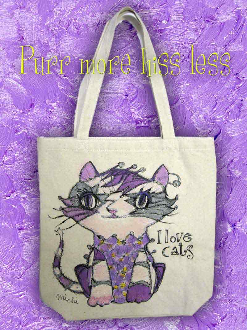 I painted pictures of a various types of cats on the cotton eco-bags. Pinterest logo mark was pasted using Photoshop App.